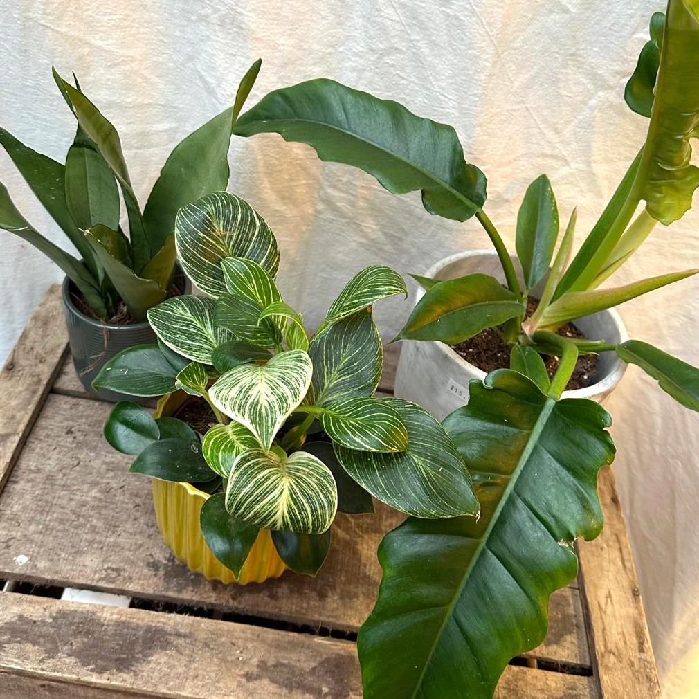 Philodendron 'White Wave' (12cm pot): The classic climbing beauty that tells you when it's thirsty.