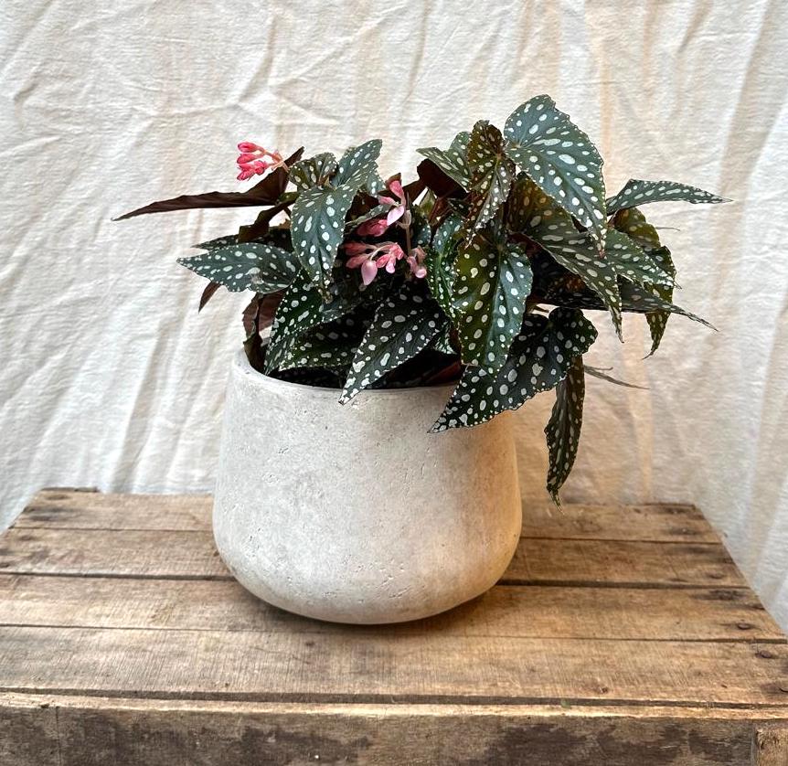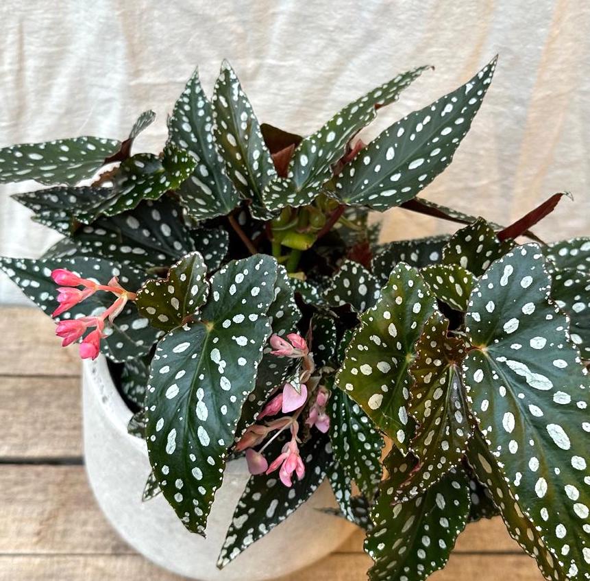 The Begonia maculata, or Polka Dot Begonia, is one of the most striking and recognisable houseplants you can find. Its long, angel-wing-shaped leaves are a deep olive green, covered in dramatic silver-white spots that look almost painted on. For an extra flash of colour, the undersides of the leaves are a deep, contrasting red. It's an eye-catching plant that grows vigorously, adding a lot of personality and pattern to a collection.